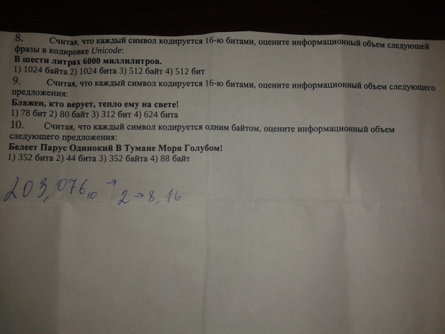 ответ под цифрой 4. Изначально следует посчитать количество символов, включая пробелы, цифры и знаки препинания. Это значения K. Вес одного символа обозначается буквой i и равен 16 бит. И по формуле I=K*i узнаём: