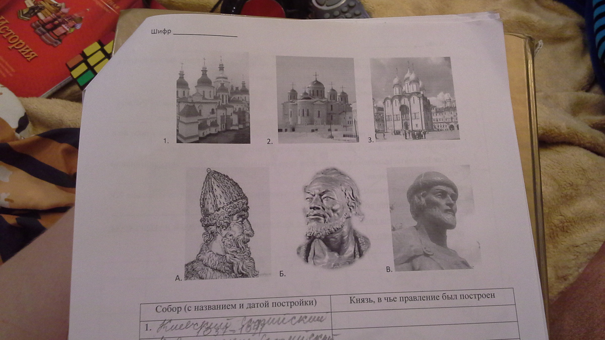 пожалуйста умоляю помогите нужно завтра выше даны изображения соборов и князей, в чье правление они построены. соотнесите номера соборов с буквами. назовите даты построек, названия соборов и имена князей