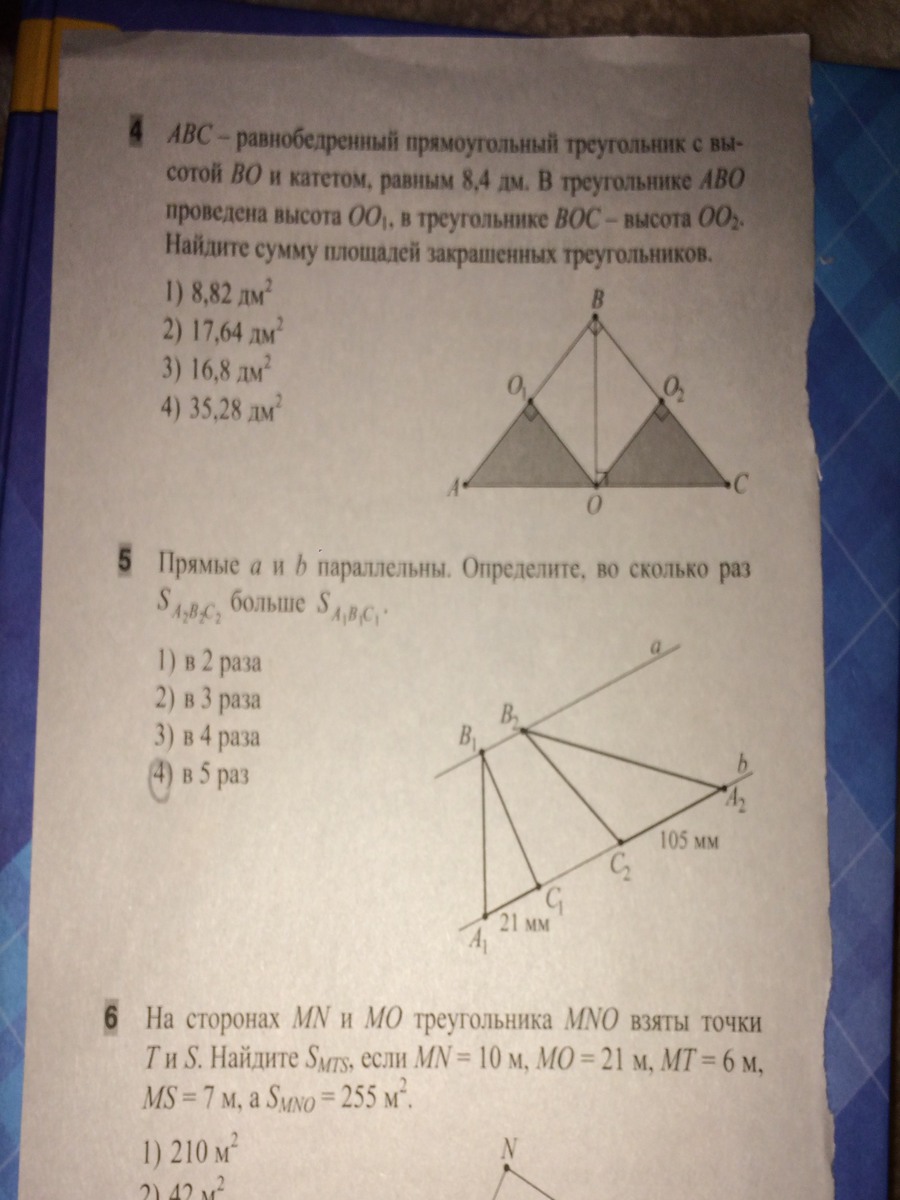 2)Высоты треугольников одинаковы, а основание второго в 5 раз больше чем у первого. Поэтому и площадь второго в 5 раз больше.