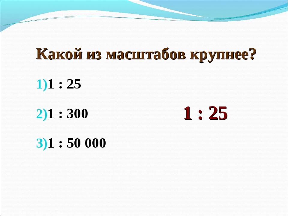 Мельче будет изображение на карте то, в 1 см которого вмещается большая длина.