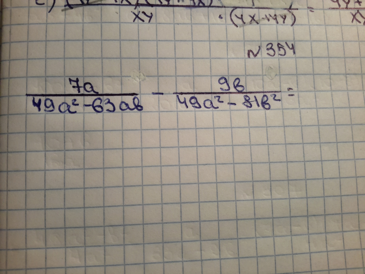 В первом надо в знаменателе 7а (7а-9в),во втором числе в знаменателе (7а-9в)(7а+9в).потом сокращаем и остаётся 9в7а+9в