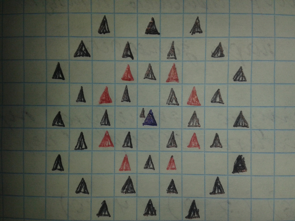 во время второго хода может вернуться в первоначальное положение, поэтому в центре два треугольника
