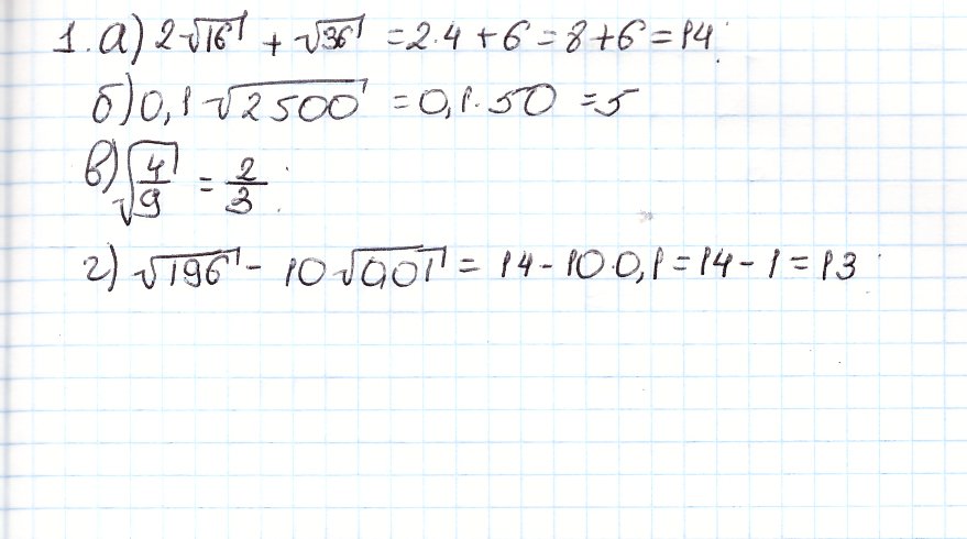 4)√196 - 10√0,01=14 -10*0.1=14-1=13