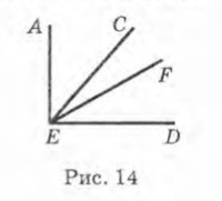 Из вершины прямого угла AED (рис. 14) проведены два луча EC и EF так, что угол AEF=58 градусов, угол CED=49 градусов. Вычислите величину угла CEF.