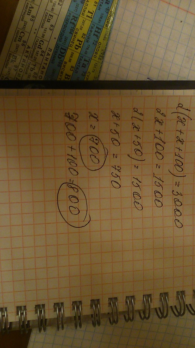 Помогите!!! Два самолета вылетели из двух городов навстречу друг другу.Расстояние между городами 3000км.Известно что скорость одного самолета на 100км/ч больше скорости другого самолетаи что самолеты встретились через 2ч после вылета.Определите скорость каждого самолета.