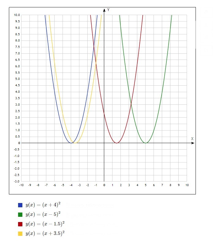 4. Графиком функции y=(x+3,5)² будет являться график функции y=x², смещенный по оси абсцисс на 3,5 единицы влево:
