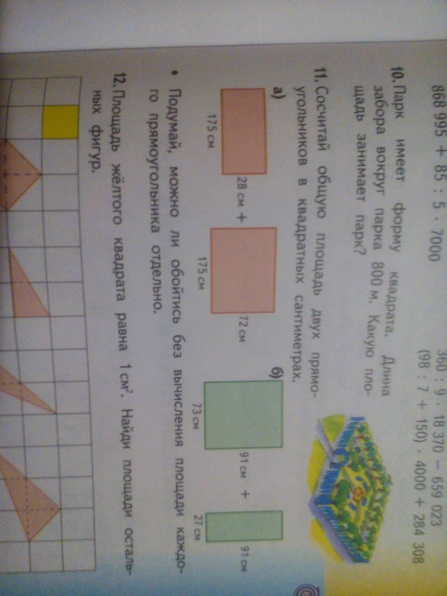3) 4 900 + 12 600 = 17 500 см² - площадь двух прямоугольников