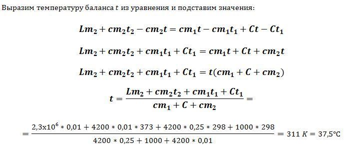 В калориметр, содержащий воду массой 0,25 кг при температуре 25 0С, впускают водяной пар массой 10 г при 62 температуре 100 0С. Какая температура установится в калориметре, если его теплоемкость 1000 Дж/К?