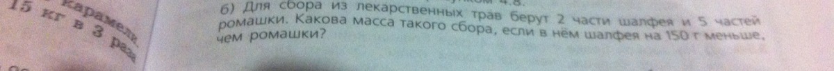 150 : 3 = 50 (г) - масса одной части шалфея/ромашки