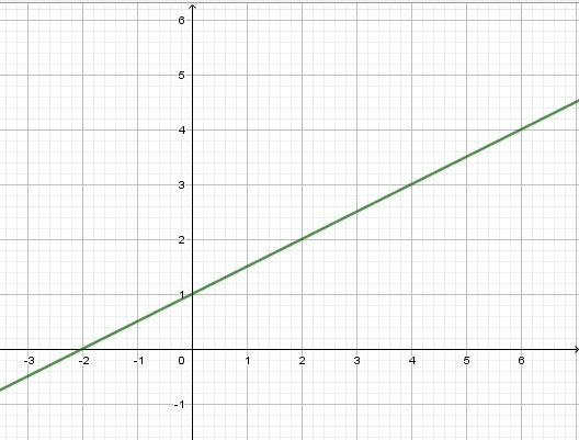 у = 0,5х + 1 - линейная функция. Графиком функции является прямая, которая проходит через точки (0;1), (-2;0)