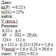 Вычислить объем воздуха, который потребуется для сжиагния 6,22г фосфора,учитывая,что в воздухе 21% кислорода