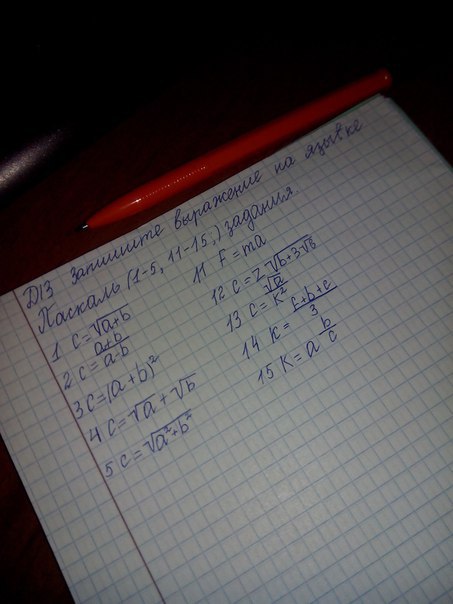 {Я специально запишу в форме программ, чтобы Вам стал более понятен синтаксис. Нужные Вам выражения находятся над процедурами writeln()}