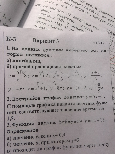 Вид линейной функции таков: y=kx+b, где х-переменная, k-коэффициент переменной, b-число. Использую вид линейной функции найди сам.