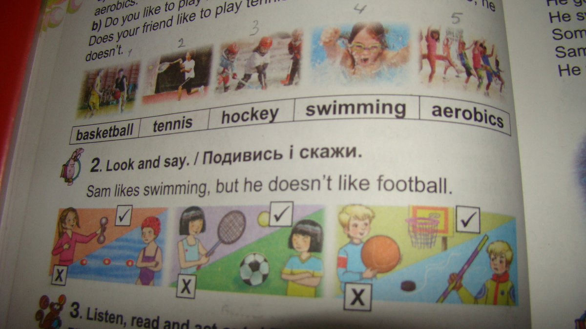1.Ann likes exercices, but she doesn’t like swimming.