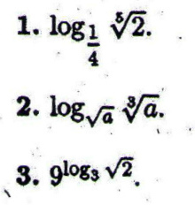 1. log_{ frac{1}{4}} sqrt[5]{2}=   log_{2^{-2}} 2^{ frac{1}{5}} = frac{ frac{1}{5} }{(-2)}log_22=-0,1cdot 1=-0,1