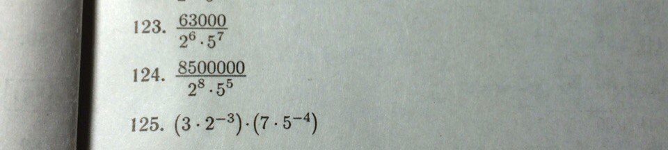 frac{8500000}{2^8*5^5}= frac{85*10^5}{10^5*2^3}= frac{85}{8}=10,625\\(3*2^{-3})(7*5^{-4})= frac{21}{10^3*5}= 4,2*10^{-3}=0,0042
