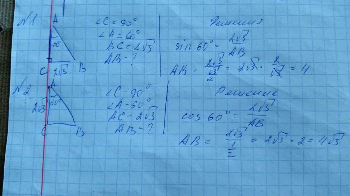 2) В треугольнике АВС угол С= 90(градусов) угол А =60(гр.) АС= 2корня из 3 Найдите АВ