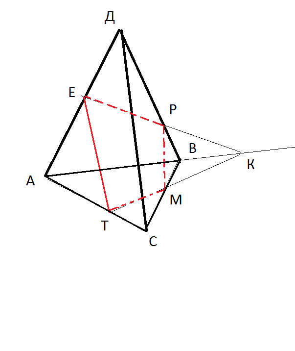 В тетраэдре DABC точки E,P,M принадлежат соответственно ребрам AD,BD,BC.При чем прямые EP и AB не параллельны. постройте сечение тетраэдра плоскостью EPM.