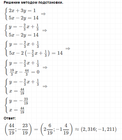 y = ( 1 - 2x)/3 = ( 1 - 88/19)/3 = - 23/19