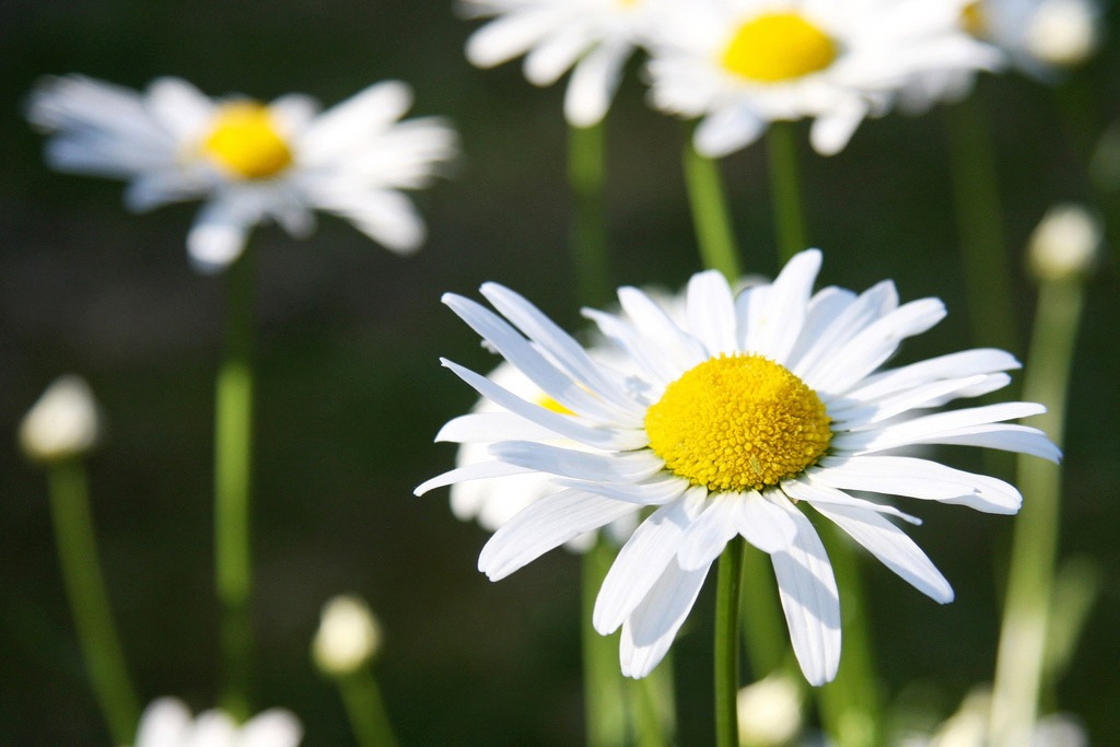 Цветки собраны в одиночные крупные соцветия-корзинки 25—60 мм в диаметре, расположенные поодиночке на верхушке стебля или его ответвлений. Краевые ложноязычковые цветки в корзинках очень длинные, белые, не образуют семян; срединные трубчатые цветки жёлтой окраски, двуполые, дают нормально развитые плоды-семянки.