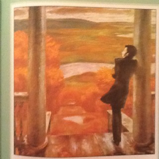 на переднем плане я вижу как будто в дворце стоит человек.а на заднем стоят маленькие осенние детки я будто попала в загадочный лес как красиво осенью!!!!!!