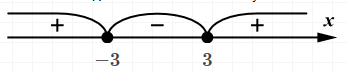 Наносим найденные точки на числовую ось и вычисляем знаки на каждом интервале