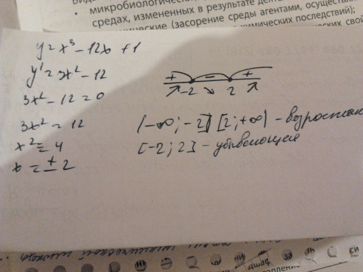 Определите промежутки возрастания и убывания функции: y = х3 - 12x +1 И если сможете нарисуйте таблицу и график! Пожалуйста!