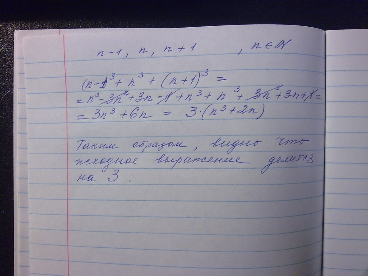 Таким образом, сумма кубов трех последовательных натуральных чисел будет делиться на 3.