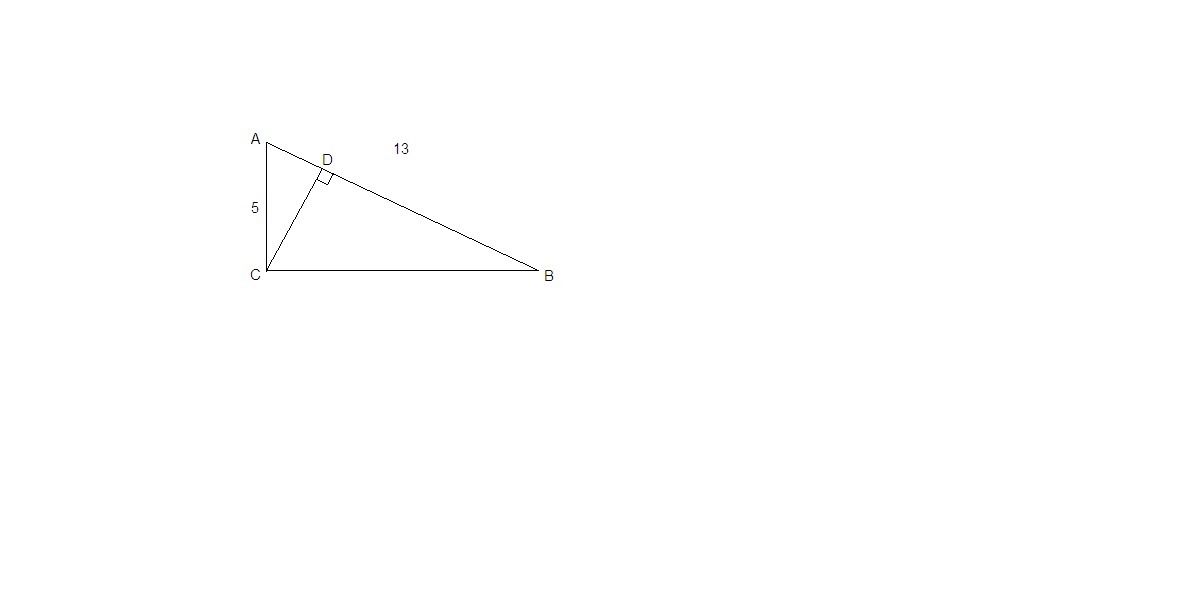 Дано: треугольник АВС, СD - высота, АС = 5 см, АВ = 13 см.