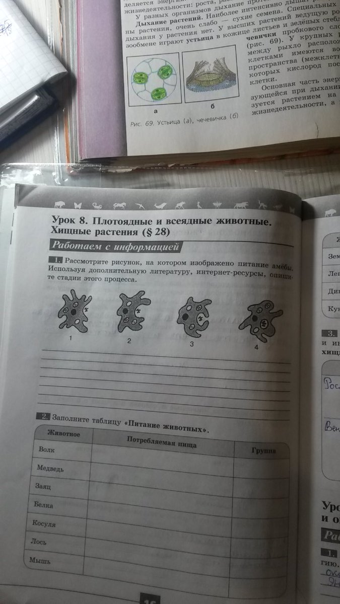 захват пищи затем переваривание.