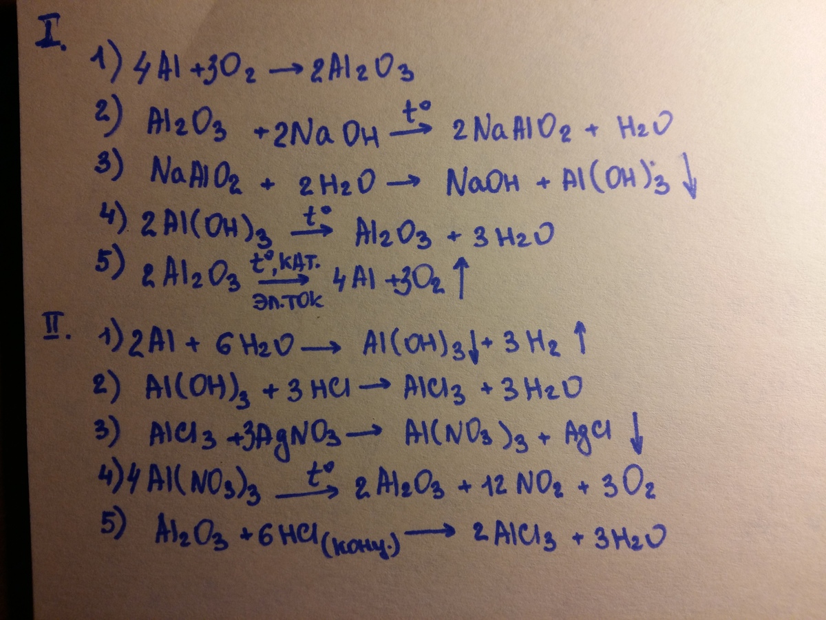 2) Al ->Al(OH)3->AlCl3->Al(NO3)3->Al2O3->АlCl3