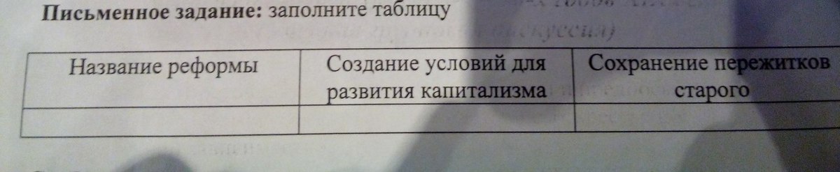 Сохранение пережитков старого: Сохранение полуфеодального порядка. Хоть они и получили свободу и права, крестьяне, чтобы выкупиться, должны были платить оброк и отрабатывать барщину до 1887 года.