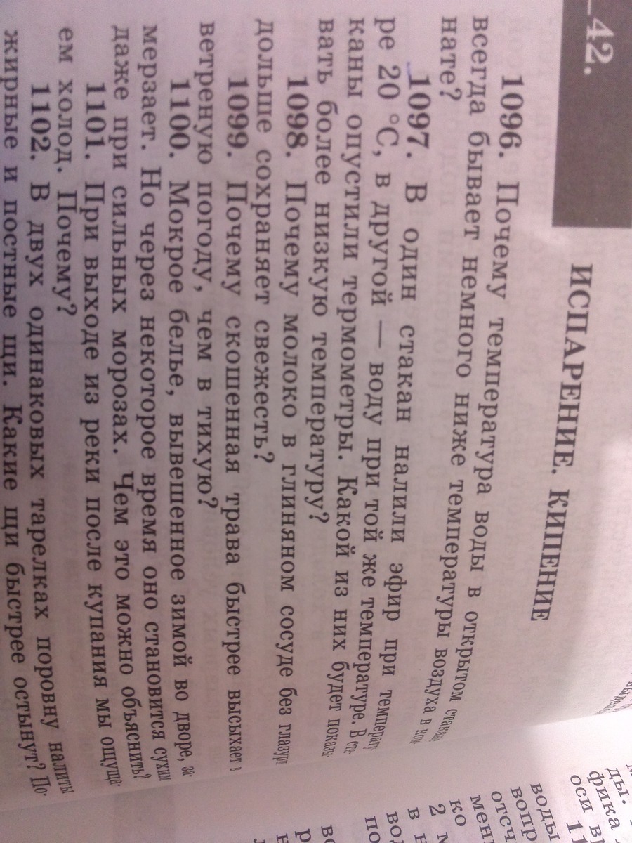 В силу различия удельной теплоемкости и удельной теплоты парообразования испарение одной единицы массы воды должно вызвать большее охлаждение жидкости, чем испарение одной единицы массы эфира. Но интенсивность испарения эфира в несколько раз выше интенсивности испарения воды. В итоге более низкую температуру будет показывать термометр, опущенный в эфир.