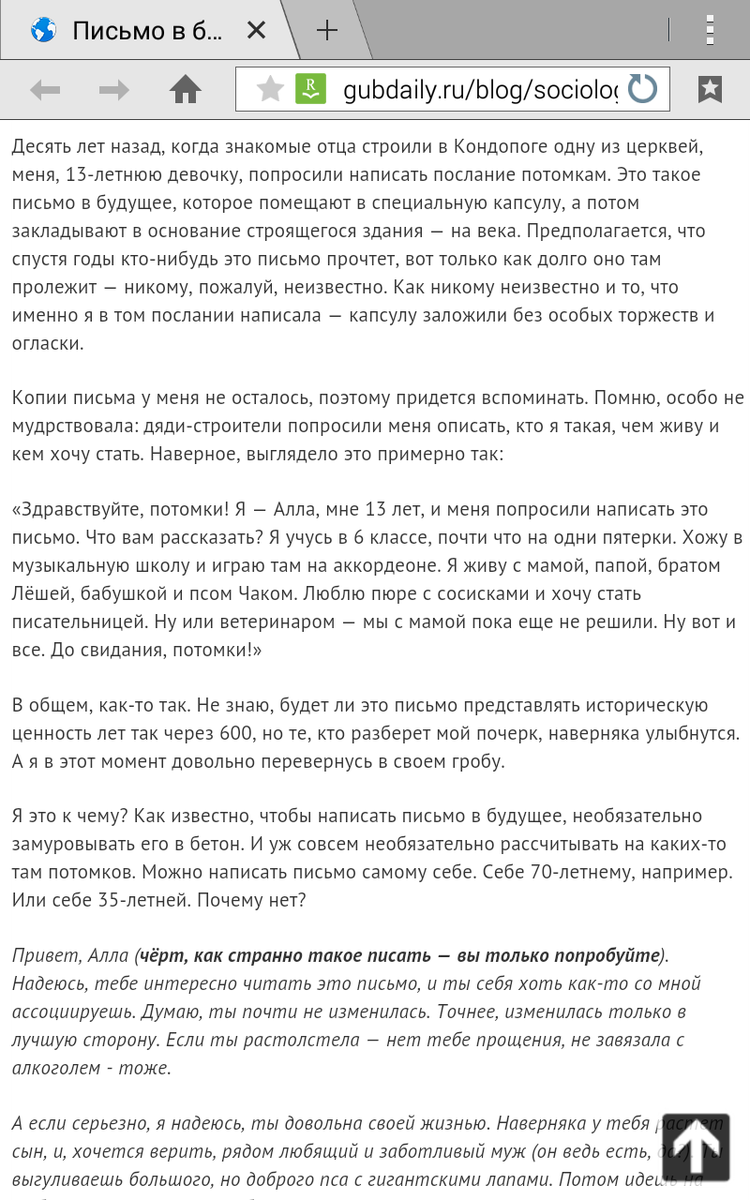 Примерно вот так) Привет. меня зовут Катя Мне 13 лет. Я учусь в 6 классе) Люблю есть макароны с сыром) Хожу на танцы, учусь играть на скрипке) Хочу стать писательницой) И думаю сейчас когда тебе 18-27 лет. Ты научилась играть на скрипке, и стала писательницой как хотела 7-14 лет назад)) Ну пока Катя Желаю Удачи Тебе))