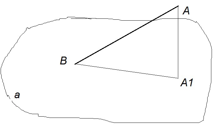 Прямая АВ, перпендикуляр АА1 на плоскость "а" и проекция на плоскость прямой АВ образуют прямоугольный треугольник с углом АВА1 = 30 градусов и прямым углом АА1В. В прямоугольном треугольнике против угла 30 градусов лежит катет равный половине гипотенузы. Следовательно,