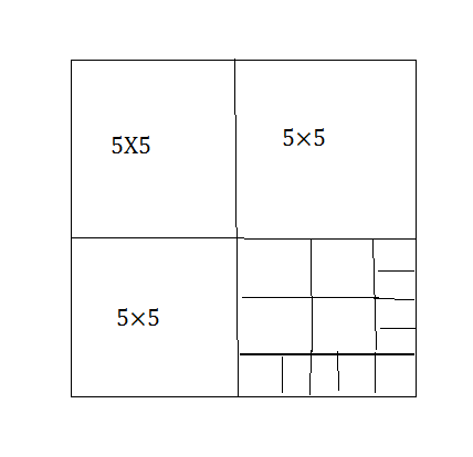 разрежьте квадрат 10 на 10 на квадратики двух различных размеров так, чтобы квадратиков разных размеров было поровну