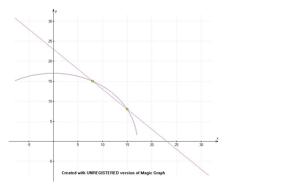 х^2+y^2 = 17^2 (це отримаємо з теореми Піфагора), або, що є те саме