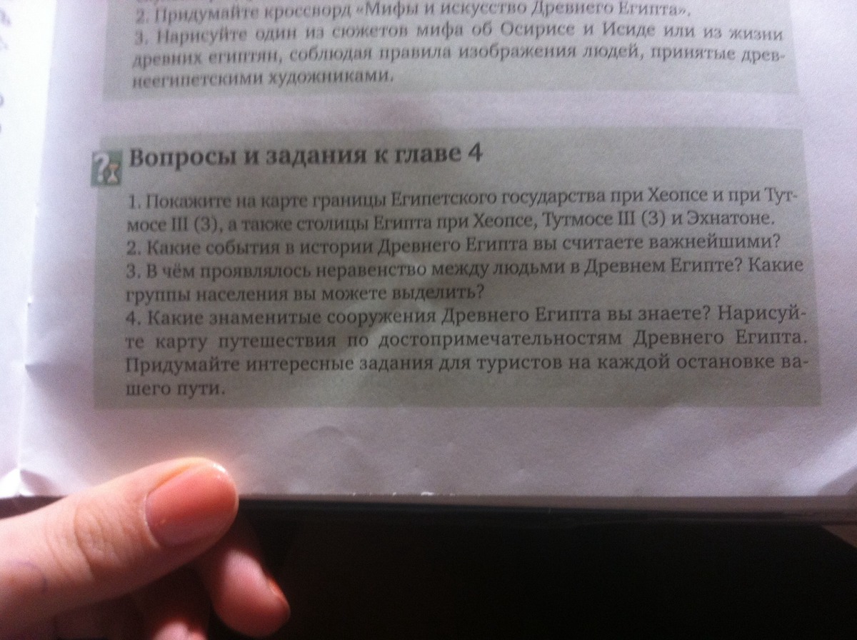 Проявлялось не равенство в том,что например были фараоны и рабы. Рабы работали целыми днями,а фараон не работал это рабов заставляли работать поэтому рабы не любили фараона. 4- Я знаю сооружения например пирамиды,сфинкс и пирамида Хеопса. Я бы придумал задания для туристов такие например: взобраться на высокую пирамиду или побывать внутри пирамиды.