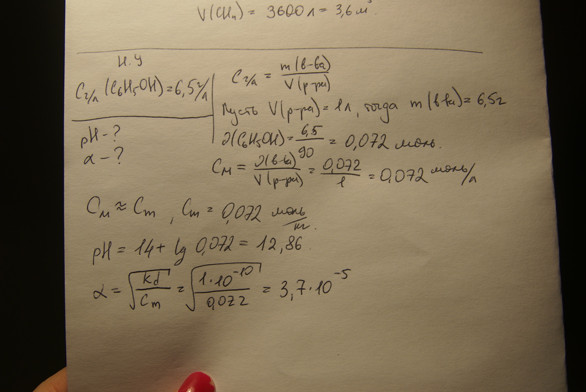 Определить pH и степень диссоциации предложенного раствора слабого электролита при температуре 25°, C6H5OH? 6,5 г/л