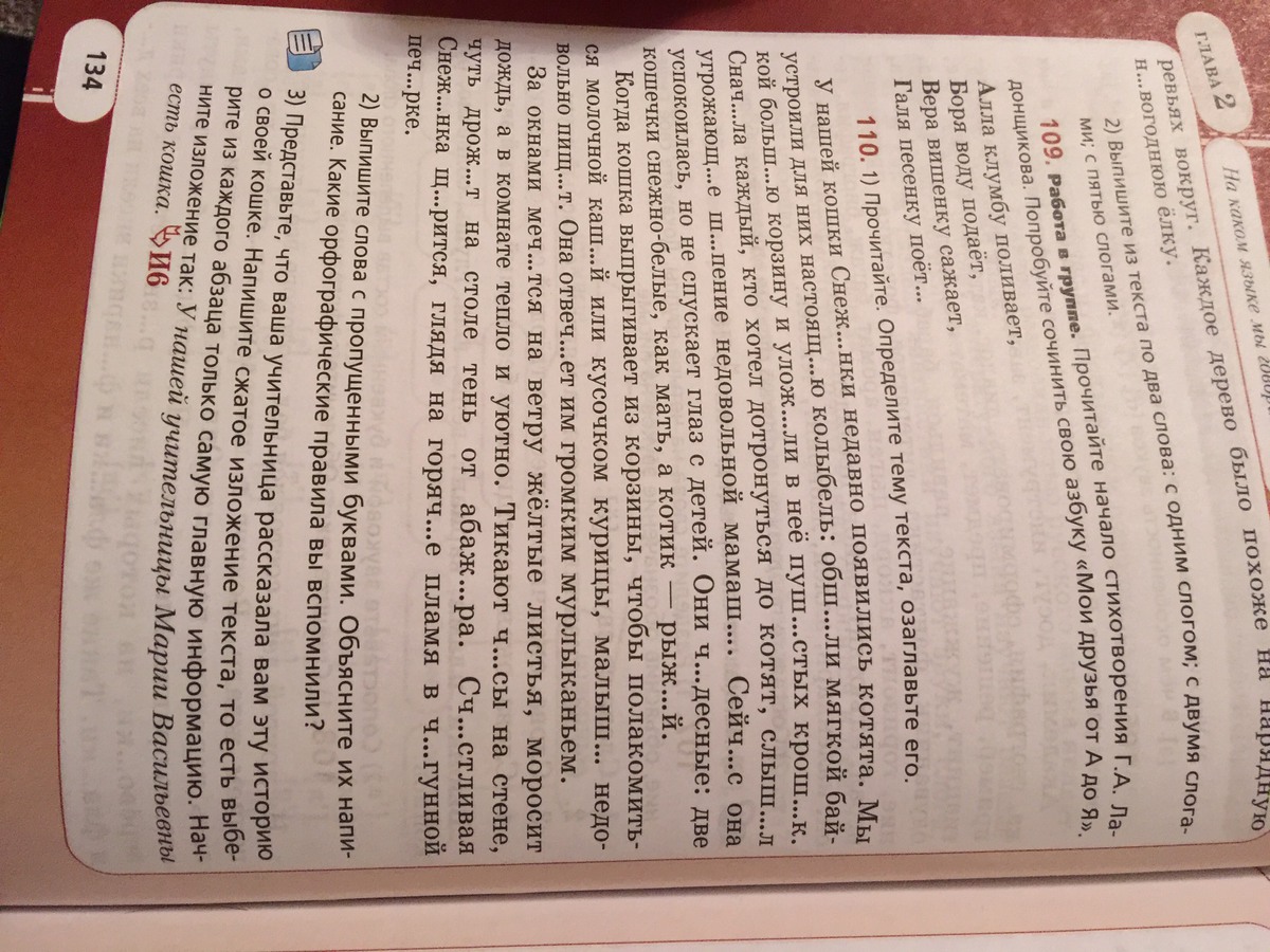 У нашей учительницы Марии Васильевны есть кошка,у которой недавно родились котята.Когда до котят хотят дотронутся, кошка шипит и не спускает с них глаз.Когда кошка хочет покормить своих котят,то те недовольно пищат,а она отвечает им мурлыканьем.Когда за окном моросит дождь,в комнате тепло и уютно,счастливая кошка щурится глядя на горячее пламя