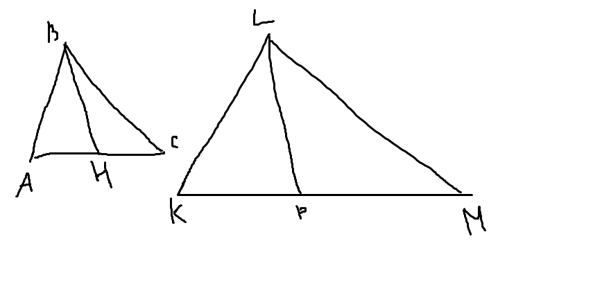 AB:KL=AH:KP, кут А = кут Р (за умовою). Отже, АВН і КРL - подібні.
