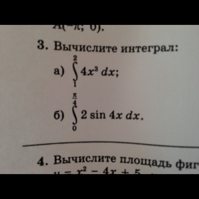 a) Неопределённый интеграл равен х^4, поэтому определённый интеграл равен 2^4-1^4=16-1=15
