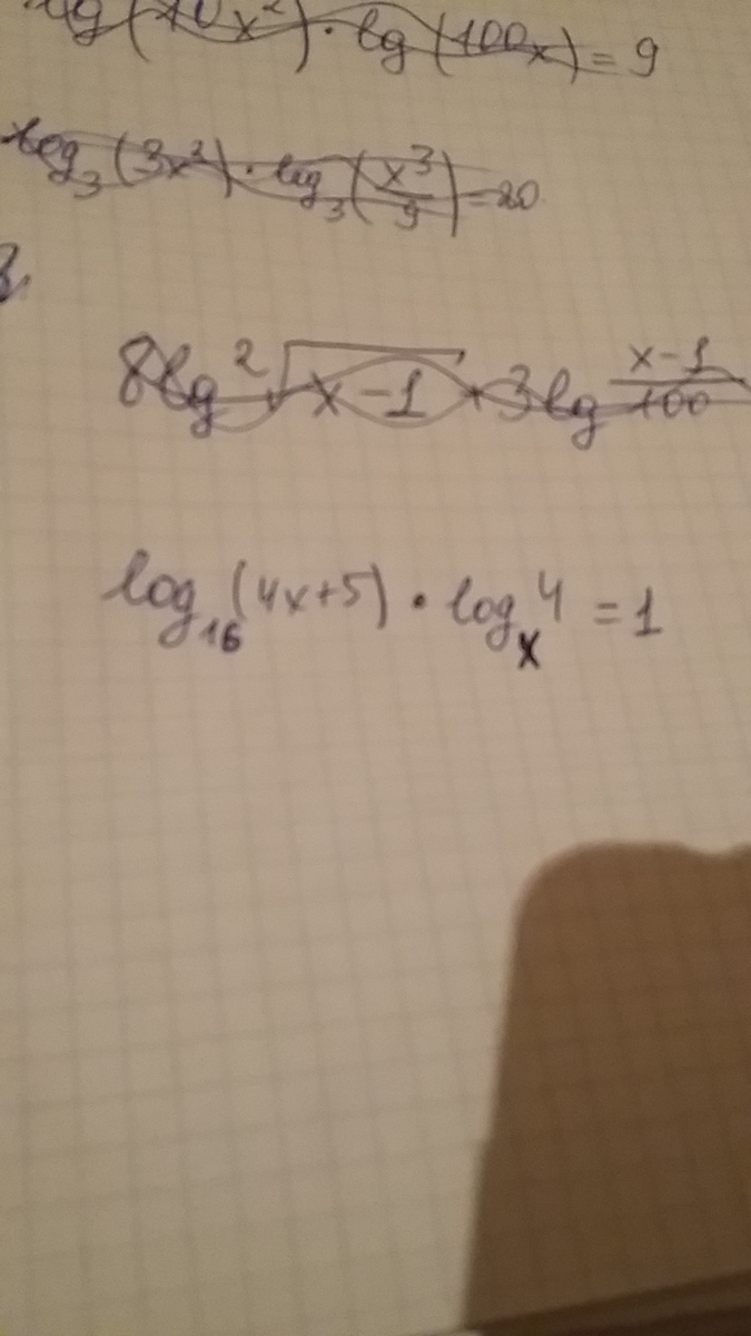 log₁₆(4x+5)=log(₄²) (4x+5)=(1/2)*log₄(4x+5)=log₄(4x+5)¹/²=log₄√(4x+5)