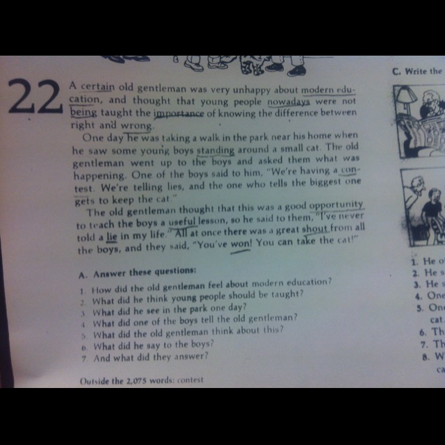 5. The old gentleman thought that it was a good opportunity to teach the boys a useful lesson/