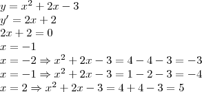 Самое наименьшее -3 при x=-1, самое наибольшее 5 при x=2.