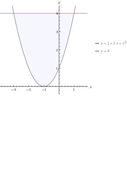 =3x-x^2- frac{1}{3}x^3]^1 _{-3} =3-1- frac{1}{3}-(-9-9+9)=11- frac{1}{3}= frac{32}{3}=10 frac{2}{3} intlimits^1_ {-3} (4-(x^2+2x+1), dx= intlimits^1_ {-3} 3-2x-x^2, dx=