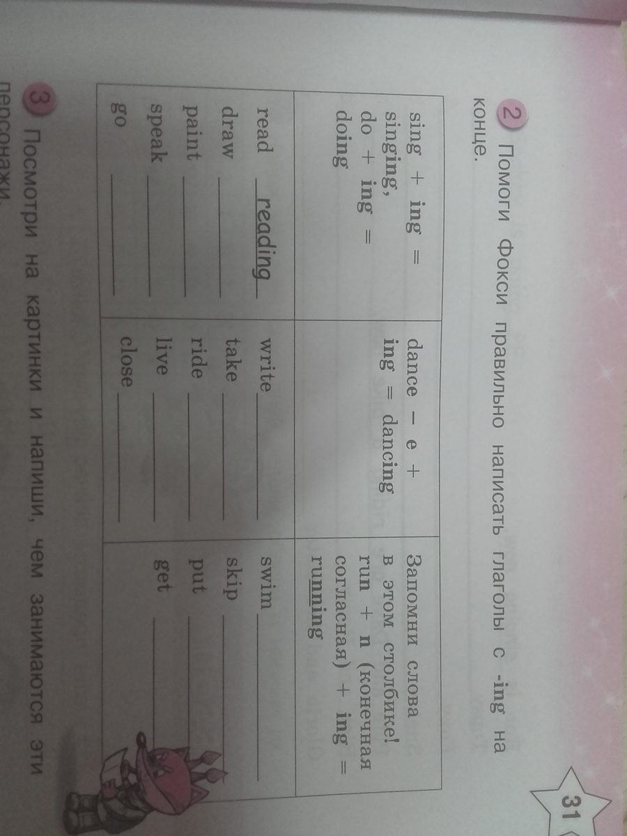 например going drawing и тд.