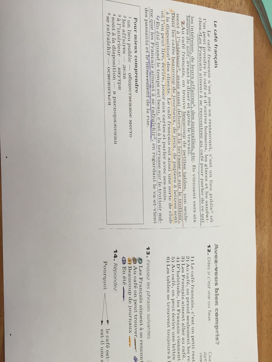 Во многих кафе имеются газеты, игры, канцтовары, предназначенные для клиентов. Таким образом, французское кафе - это нечто вроде клуба, где можно читать, писать, играть в карты и разговаривать со своими друзьями.