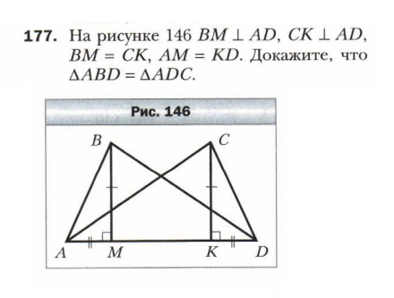 (ФОТО) ПРОШУ ПОМОГИТЕ! На рисунке 146 BM перпендикулярна AD, CK перпендикулярна AD, BM = CK, AM = KD. Докажите, что угол ABD = углу ADC.