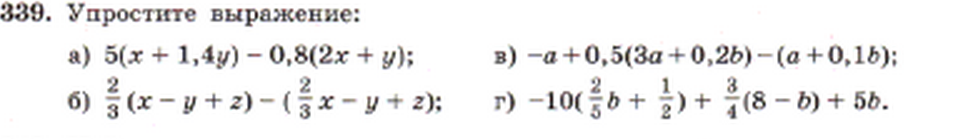 а) 5(x+1,4y)-0,8(2x+y)=5x+7y-1,6x-0,8y=3,4x+6,2y